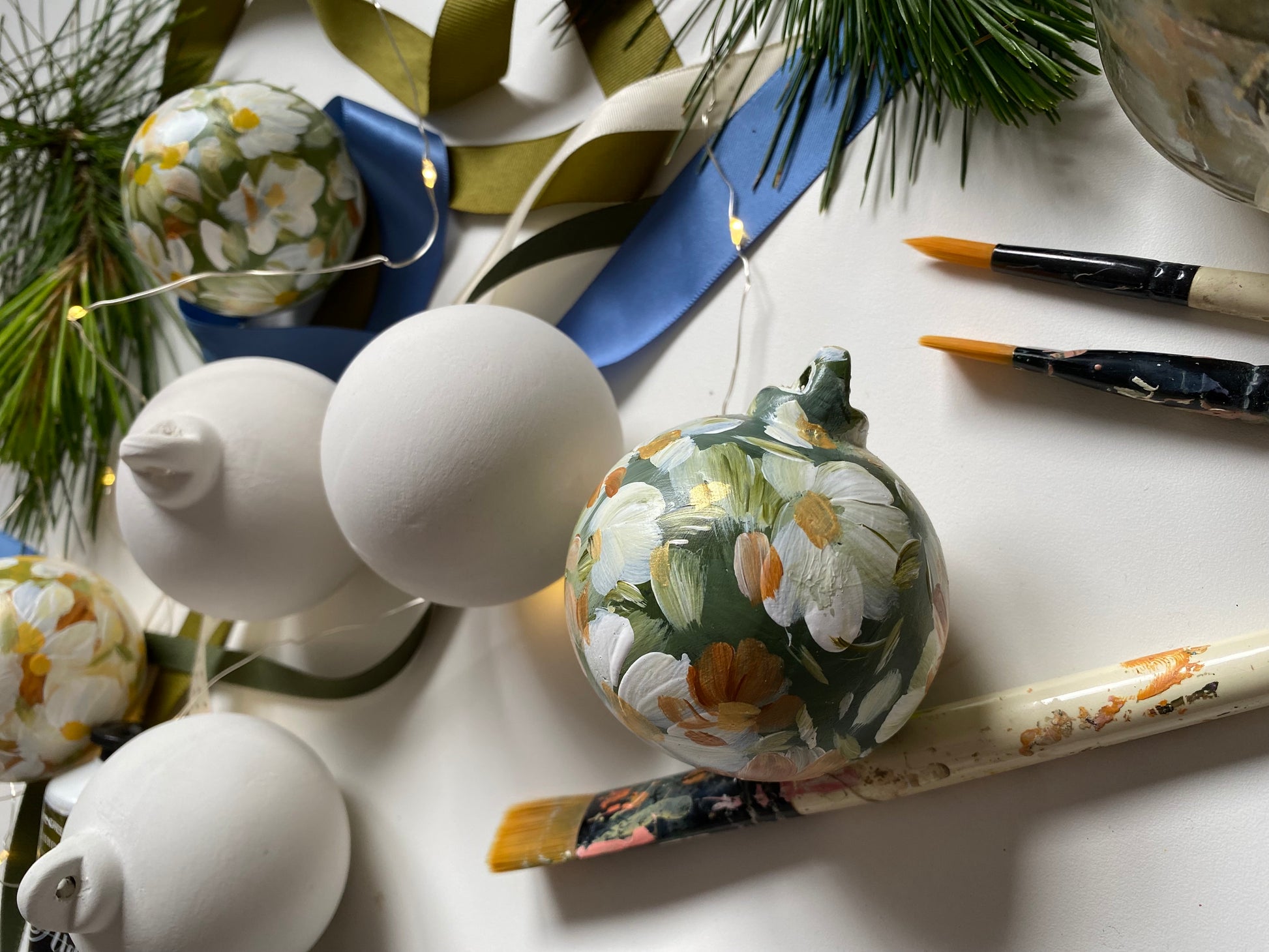 In this workshop you will have 3 ceramic baubles to paint however you like. I will then add a varnish on top to seal them nicely with a uniform finish, and add a ribbon of your choice.